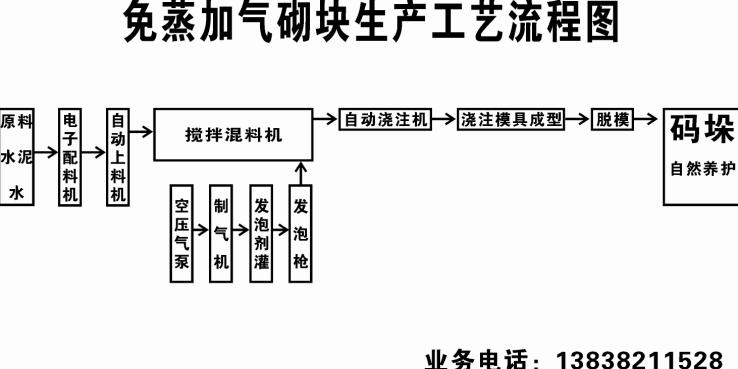 3、工藝簡(jiǎn)單,易操作。采用制氣劑及增強(qiáng)劑將水泥、粉煤灰、砂等材料聚合,通過(guò)物理加氣,利用專(zhuān)用設(shè)備及模具成型即可,無(wú)須蒸壓養(yǎng)護(hù)。